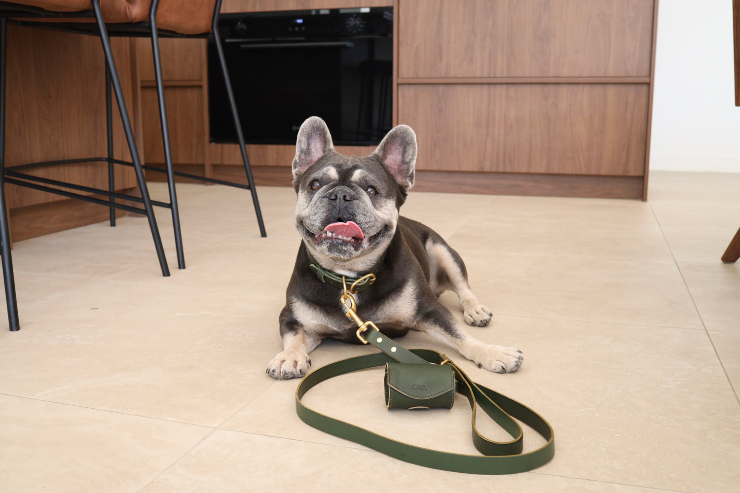 The dog's name is embossed into the leather, creating a monochromatic & minimalistic look.