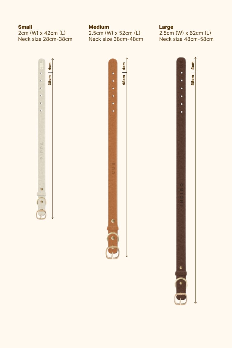 Sizing for your personalised collar to best fit your dog