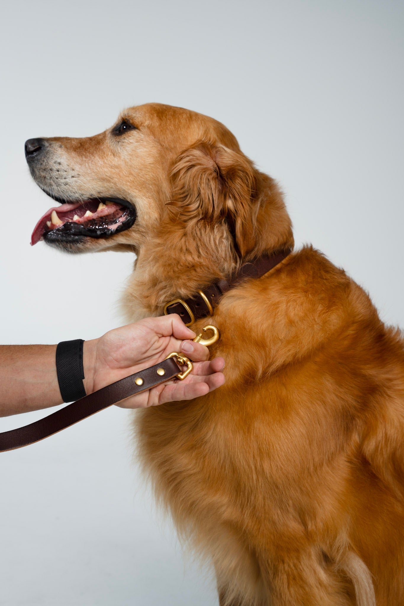 All leads are made with vegetable tanned leather and finished with antique brass fixtures.
